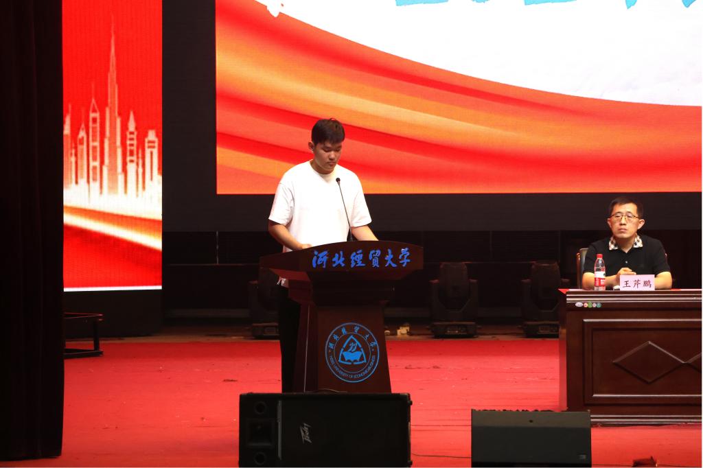 2024级网络工程专业马博文作为新生代表发言,他认为新时代青年应当树立远大理想,担当时代责任,勇敢地走出舒适圈,去迎接未知和挑战。