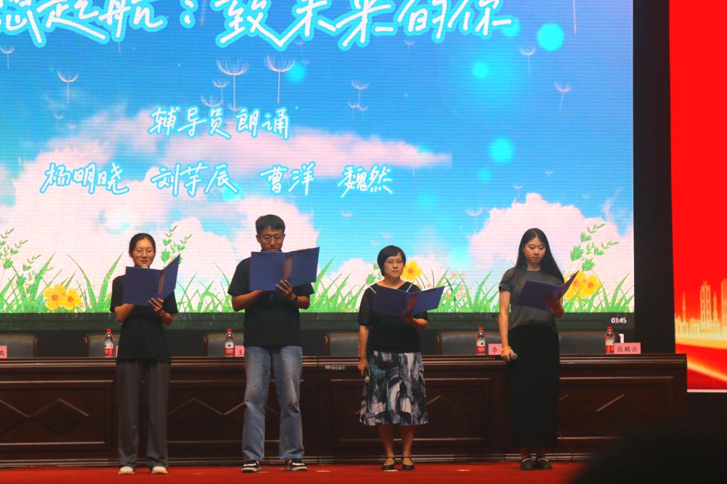 开学典礼在一曲悠扬婉转的《追光者》和辅导员老师的深情朗诵中拉开帷幕。