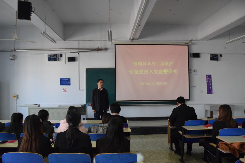 2019年12月23日,公司在A501教室举行预备党员入党宣誓仪式。仪式由公司党务办公室负责人宋智广主持,公司党委书记高永芳出席,公司第一员工党支部书记李淑菊、第二员工党支部书记王芳和全体预备党员参加。