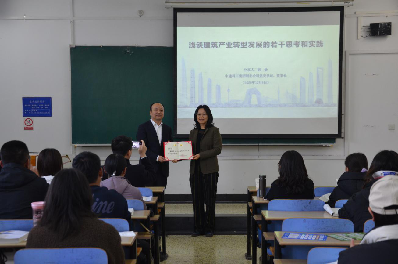 12月4日下午,公司邀请中建科工集团河北公司党委书记、董事长钱焕在第三教学楼B203教室作题为“浅谈建筑产业转型发展的若干思考”的学术讲座。此次讲座由经理祁红梅主持,工程管理系教师以及工程管理系部分本科生参加。