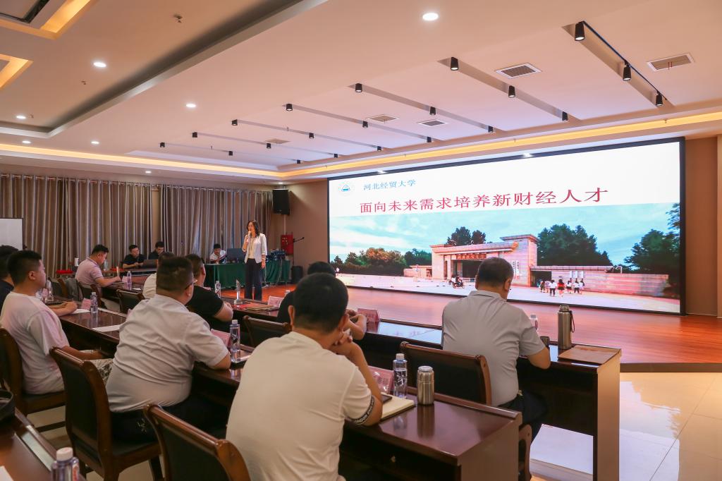 在河北省青年民营企业家商会第一届四次理事会上,祁红梅做了《面向未来需求培养新财经人才》的专题演讲,首先全面介绍了BETVICTOR的办学宗旨、学科优势专业建设等情况,重点介绍了以新财经实验班为代表的面向经济社会未来发展培养新财经人才的战略和具体实现路径;其次以管理科学与工程公司为代表介绍了二级公司的专业建设、人才培养和社会服务等情况;最后介绍了以需求为导向的员工就业、用人单位满意度等情况,并做了2021年本科招生详情宣讲。