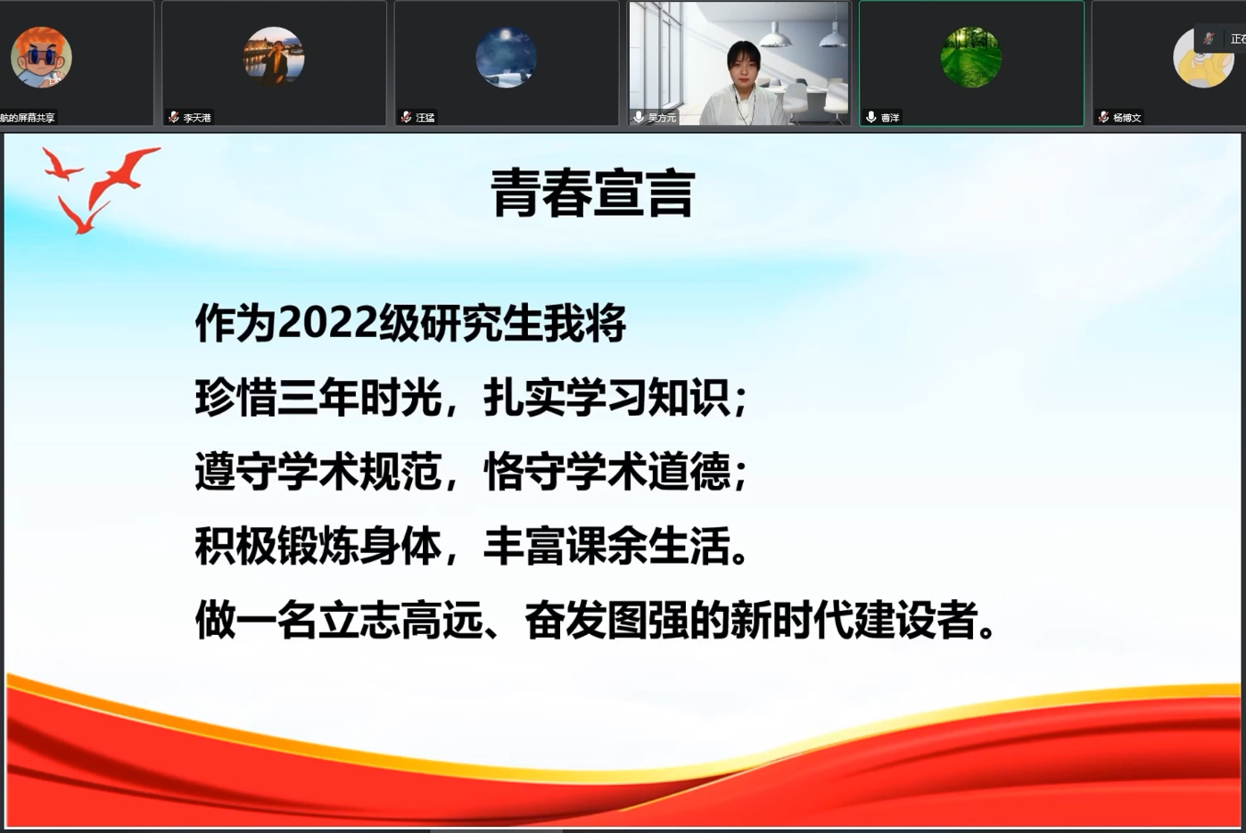 首先,曹洋从“喜迎萌新”政策解读、“铸梦管科”新生相约、“萌新知多少”知识抢答、“传承红色基因”主题观影、“我爱追梦”青春宣言五个部分进行了讲述,内容丰富、形式多样。第一部分解读了《BETVICTOR员工违纪处分办法》、《BETVICTOR研究生学籍管理规定》,提醒员工遵守公司的各项规定、注意宿舍用电安全;“铸梦管科”新生相约模块主要由新生代表发言,分享了自己的感悟;“萌新知多少”知识抢答环节通过独特新颖的方式让新生了解了党史知识以及公司的基本情况;“传承红色基因”主题观影通过师生共同录制视频“习语播报”短片,让红色思想展现在师生的视野中。随后,参会辅导员就本次主题班会展开了热烈的讨论与交流。