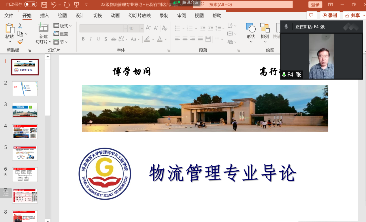 2022年9月29日,物流管理系开展了2022级新生入学专业教育。会议由系主任马翊华主持,物流系全体教师参加。会议特邀具有多年物流企业工作经验的河北快运集团有限公司张志强总经理,与专业教师一起为22级新生做入学专业教育。