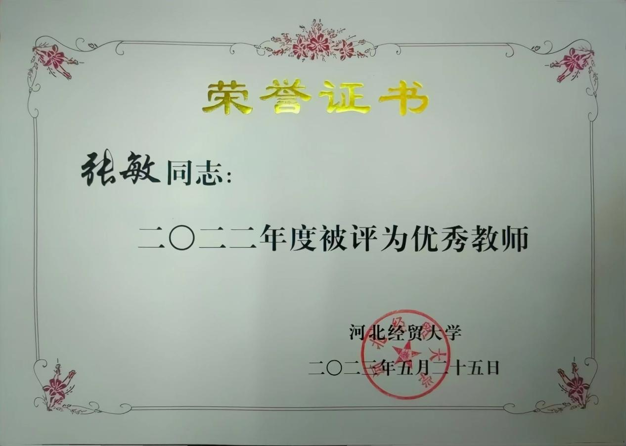 张敏获得荣誉证书