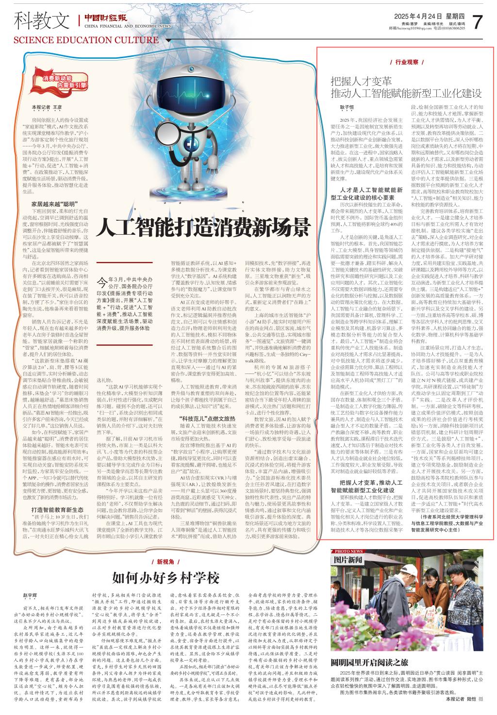 2025年4月24日,《中国财经报》第7版(科教文版)刊发公司BETVICTOR耿子恒教授的理论文章《把握人才变革 推动人工智能赋能新型工业化建设》。