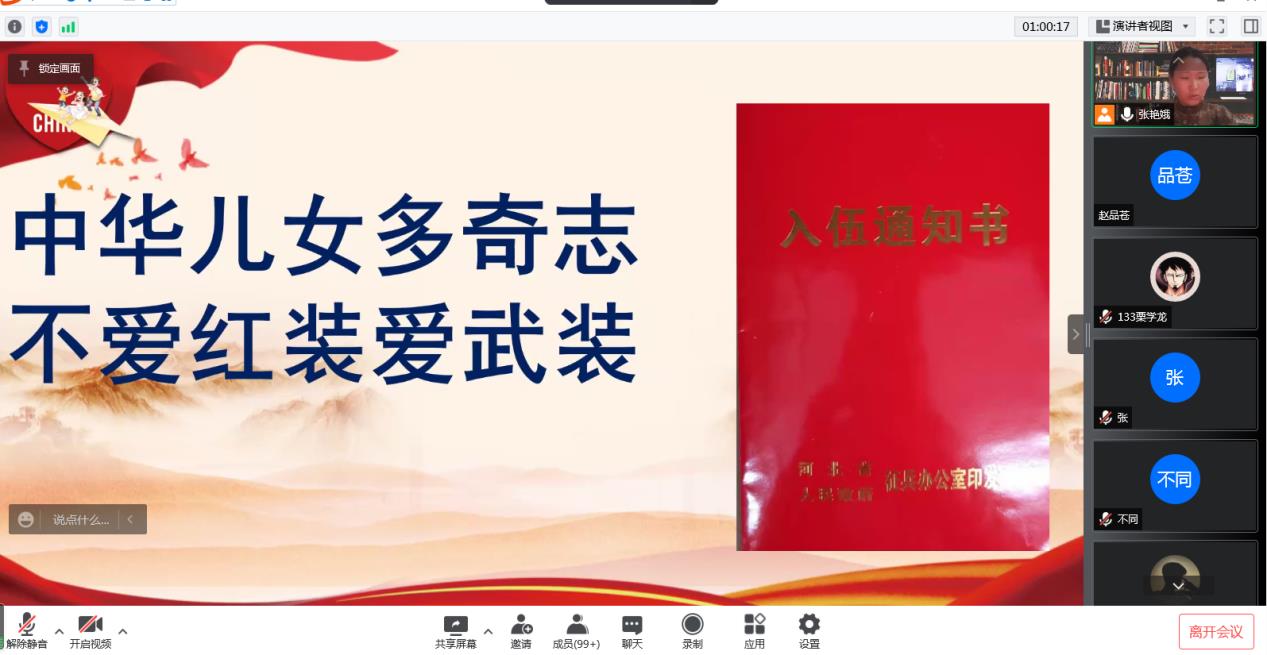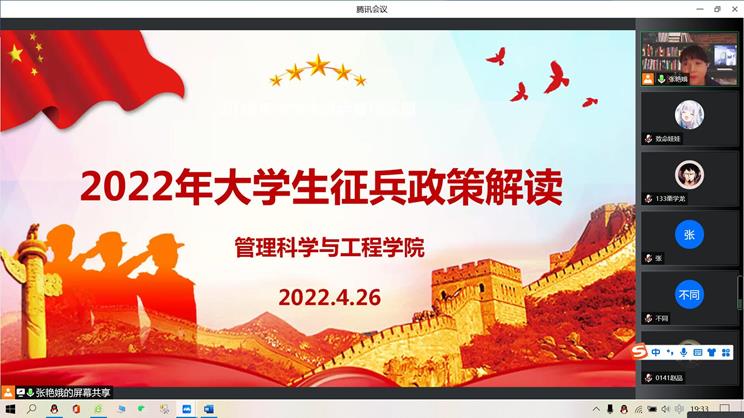 4月26日晚,公司通过腾讯会议召开老员工征兵政策宣讲会。本次宣讲会由党委副书记李丽主讲,全体辅导员、大四员工及大三全体男生参加。