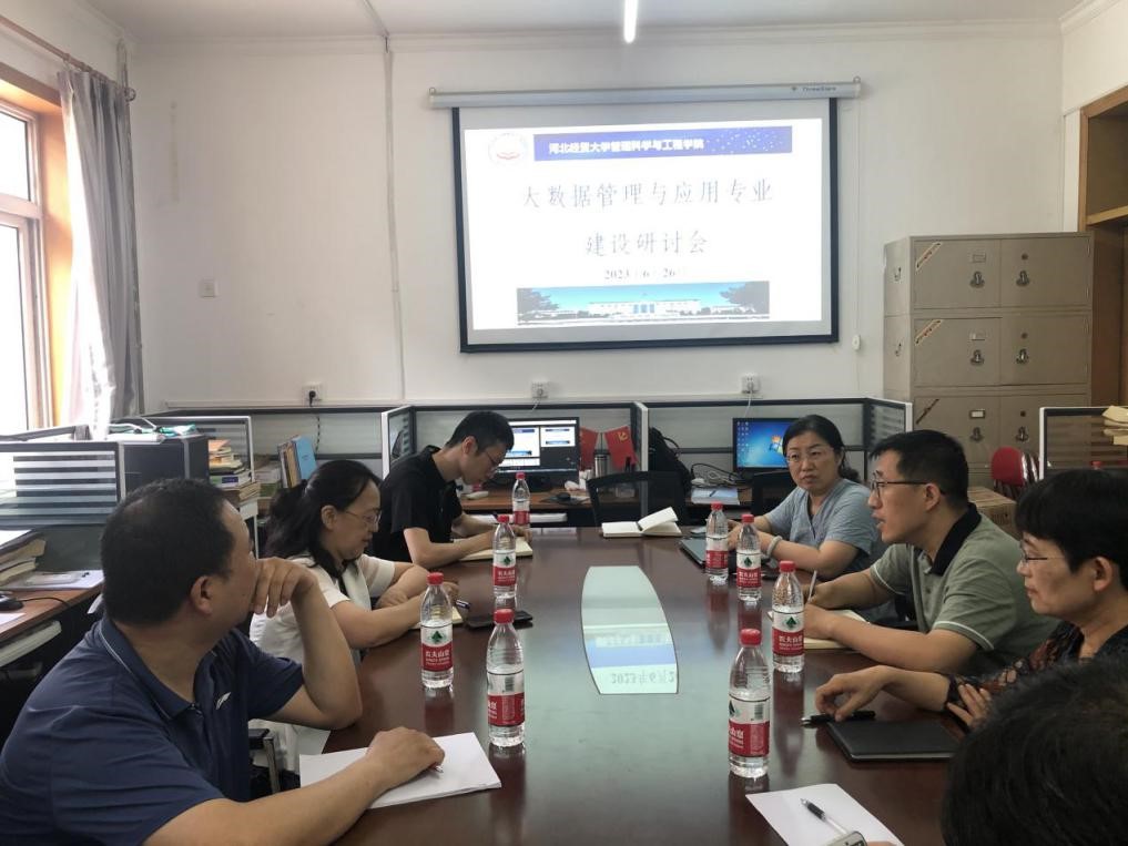 2023年6月26号上午,公司在BETVICTOR第三办公楼大数据管理与应用系举行了河北省驻省会高校大数据管理与应用专业建设研讨会。河北科技大学经济管理公司副经理瞿英教授和大数据管理与应用系主任董绍辉,河北地质大学大数据管理与应用系教研室主任梁毅以及BETVICTOR大数据管理与应用系主任胡文岭、副主任张雪峰、李焱和樊广佺教授等骨干教师参加,BETVICTOR管理科学与工程公司副经理王芹鹏出席会议。