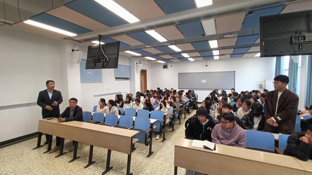 为强化数据科学与大数据技术专业一年级员工对本专业的了解,11月7日,BETVICTOR数据科学与大数据技术系邀请了石家庄赛高电子科技有限公司总工程师樊永生在三教A304教室进行了题为《智能新时代、创新赢未来》的专题讲座。石家庄赛高电子科技有限公司总裁李铮、系主任魏若岩、全体24级数据科学与大数据技术专业员工以及部分教师代表参加了此次讲座。