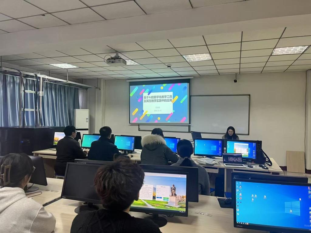 薛学亚老师就人工智能时代下教师如何提升数字化素养、利用数字化工具展开数字化教学、数字化时代未来教育的方向展开分享,主要就如何高效利用AI工具备课、视频资源制作、讯飞星火大模型接入微信实现微信教学助手托管等方面与其他老师进行了介绍,并与参会教师进行了深入交流。