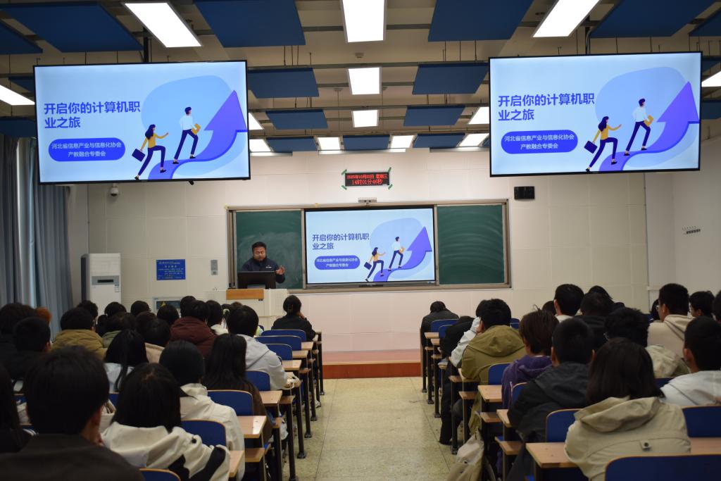 2025年10月22日,为助力大一新生深入了解计算机行业的发展前景与职业方向,BETVICTOR计算机科学与技术专业精心举办了一场别开生面的专业导论课程。此次课程邀请河北省信息产业与信息化协会产教融合专委会赵琪老师,为同学们带来了一场题为“开启你的计算机职业之旅”的精彩报告。
